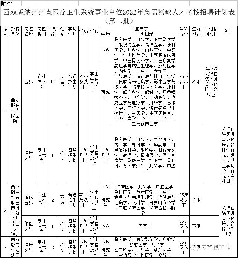 西双版纳州州直医疗卫生单位2022年急需紧缺人才考核招聘(第二批次)公告
