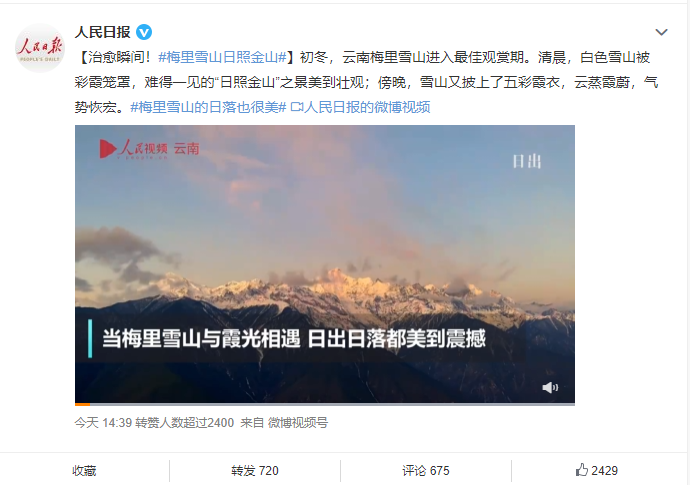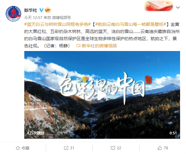 也发布了一则白马雪山的视频