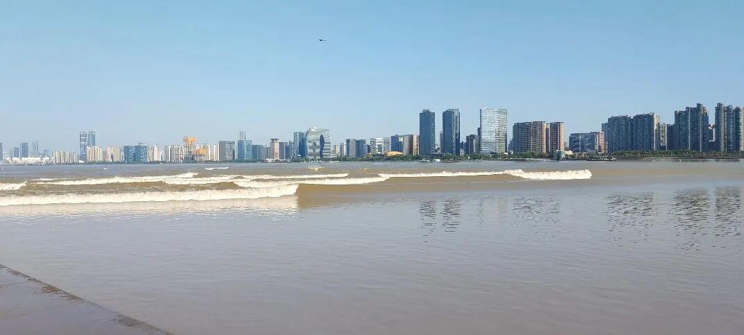 2021年9月,钱塘江的江边骑行,他们第一次遇上钱塘江大潮,亲身体味“海阔天空浪若雷,钱塘潮涌自天来”。轰鸣声中,他们在江堤上骑车追逐着潮水的脚步。经济学院2019级本科生李元回忆道:“排山倒海的涌潮伴我们而行,时不时在身边溅起浪花,瞬得几丝清凉感。骑到九溪,潮水突然冲天而起形成了回头潮,我们连忙将车停在一旁,惊叹观看,待潮水慢慢褪去,才依依不舍地收拾行装继续向前……”