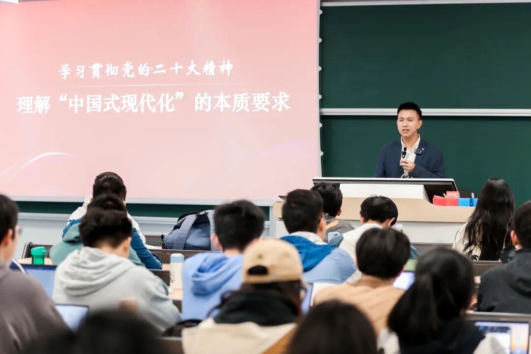课上,外国语学院2020级本科生陈楷文所在小组结合党的二十大报告精神,从微观经济角度谈了推动经济高质量发展的理解与思考。“我们小组从新发展理念入手,通过一个个案例让同学们加深认识。”这个小组还通过线上形式开展企业调研,结合一手资料展现中国经济的强劲韧性和巨大潜力。