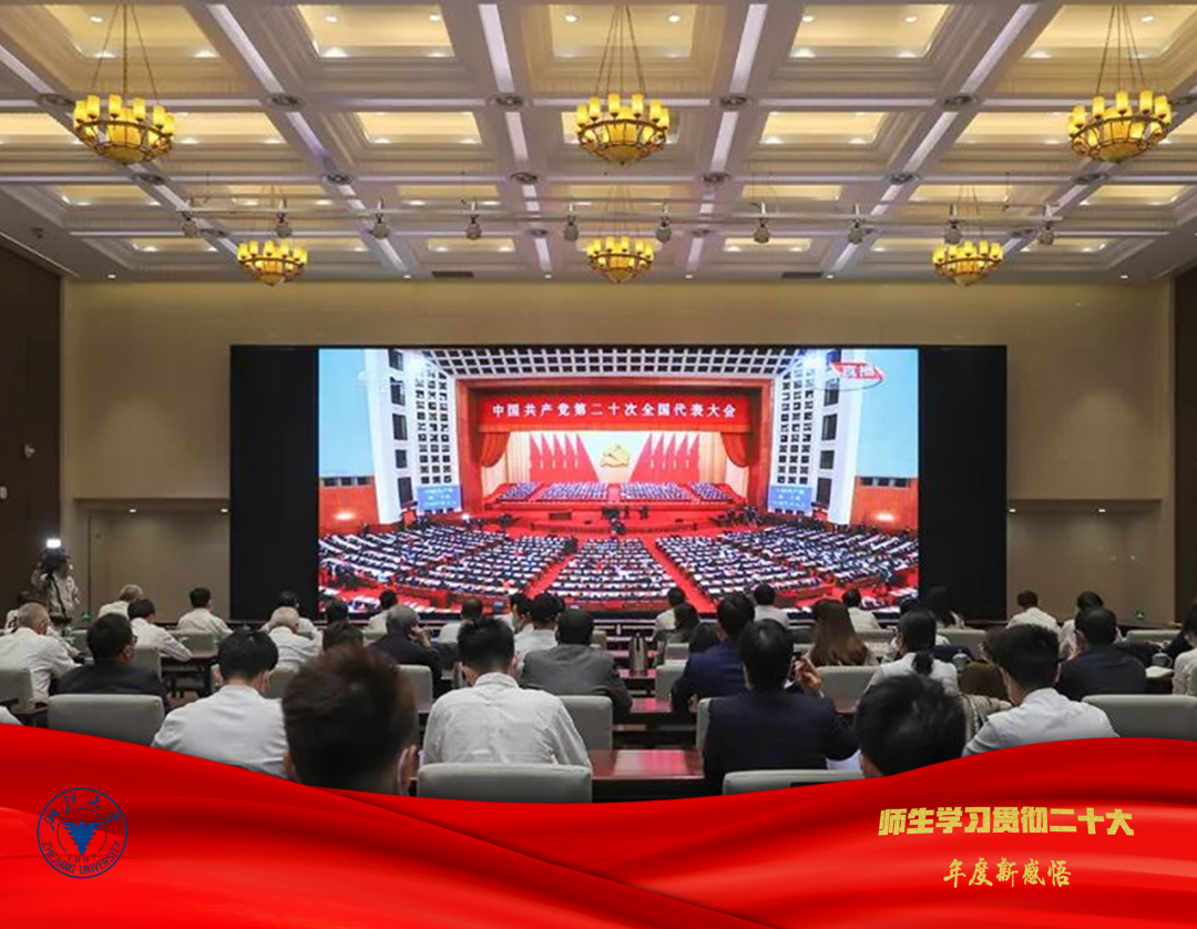 10月16日,举国关注、举世瞩目的中国共产党第二十次全国代表大会在北京隆重开幕。浙江大学在紫金港校区设立开幕会收看主会场并举行学习座谈会,相关校区设集中收看点。广大师生在教学楼、实验室、生活区,通过各种形式第一时间收听收看开幕会盛况,深入学习领会党的二十大精神。二十大胜利闭幕后,浙江大学以多种形式学习贯彻二十大精神,深刻感悟伟大思想,师生员工们表示,要以党的二十大精神为指引,不断开创中国特色世界一流大学建设新局面,为全面建设社会主义现代化国家、全面推进中华民族伟大复兴贡献浙大智慧和力量。