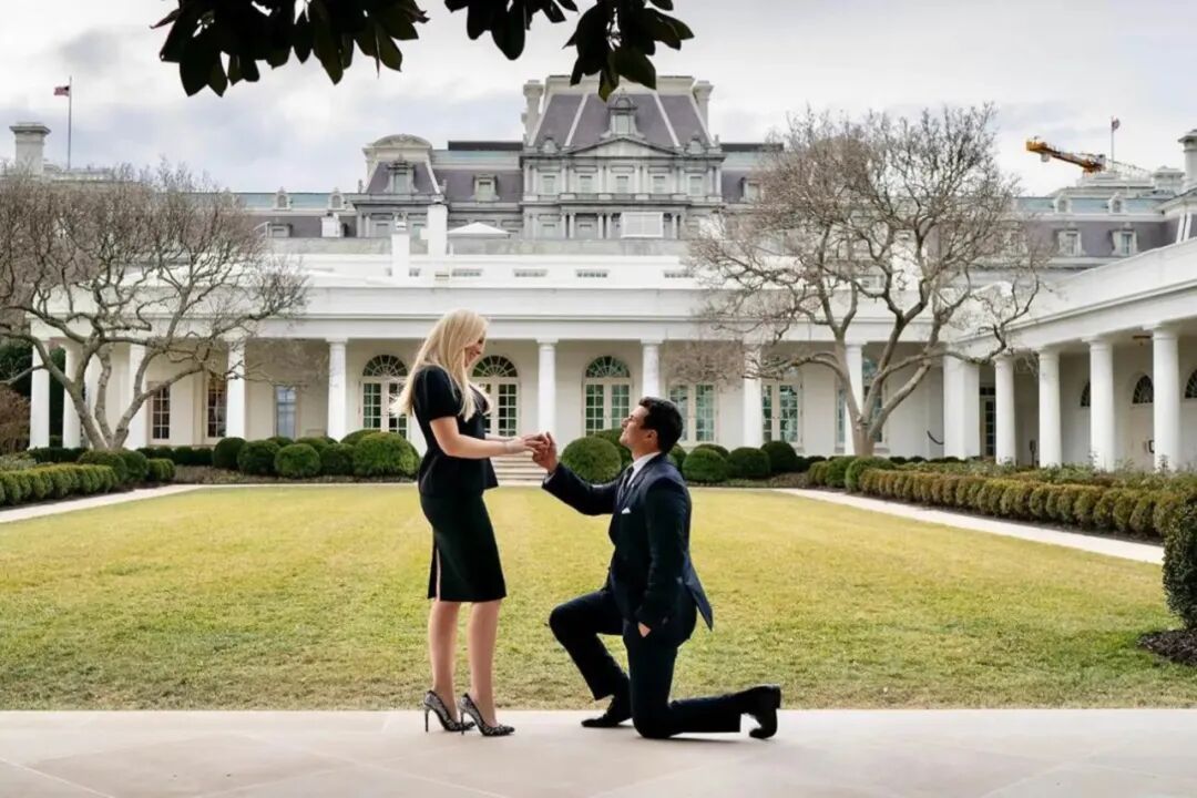 再接下来,2021年1月,迈克尔直接在白宫单膝跪地求婚,并成功订婚。