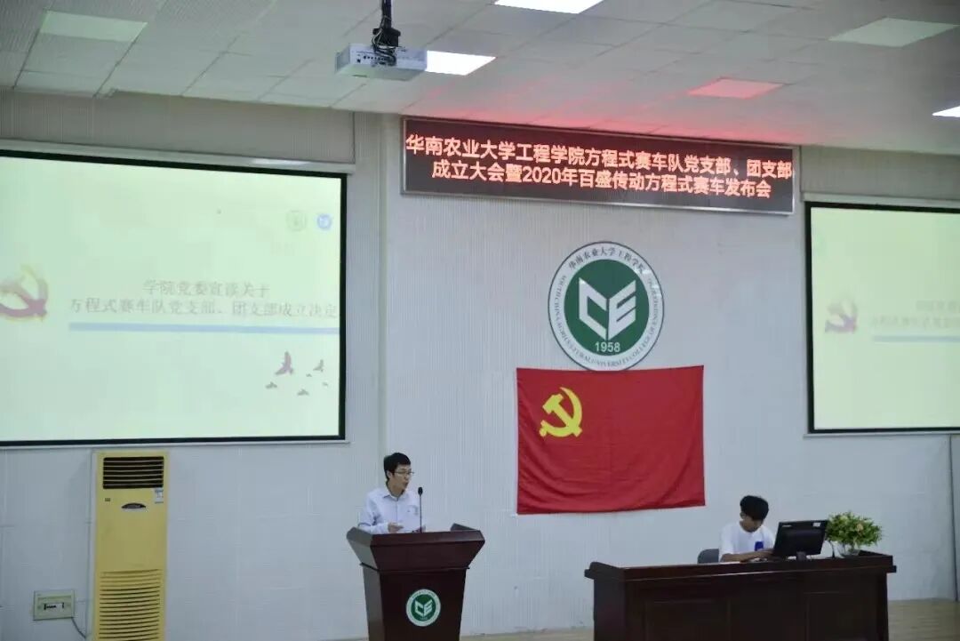 ▲方程式赛车队党支部、团支部成立大会暨新车发布会