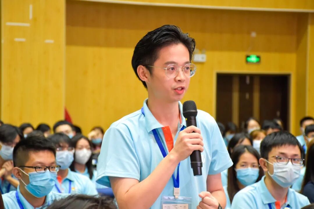 广东省机械技师学院教师杨登辉回顾了自己代表国家出征第44届世界技能大赛并获得数控铣金牌的故事。“十年如一日般训练和比赛,我只为一个小小零件在我手里从试验品到合格品,再到整体商品和进入市场,而冠军只是我多年来努力而赢得的,是我们团队不懈奋斗的证明。”杨老师用轻松幽默的语言讲述了一段段挥洒汗水的备赛经历,激励学员们继承“工匠精神”,实干兴邦,为祖国的建设添砖加瓦!