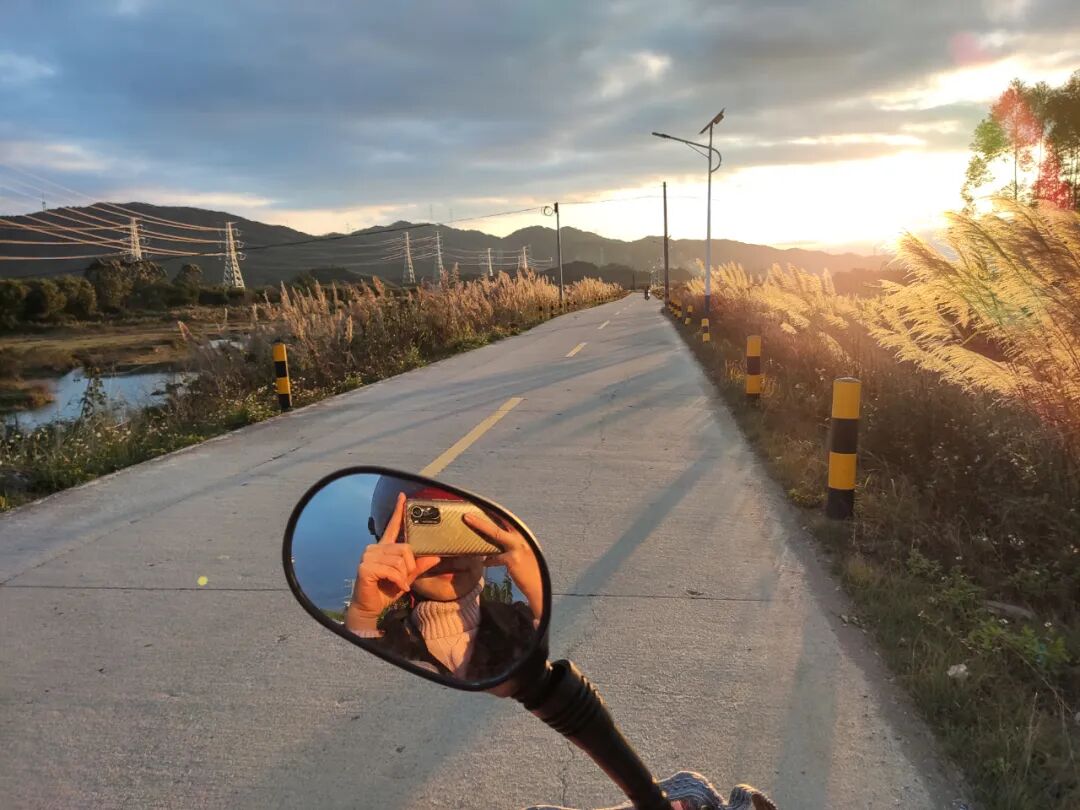镇上连续暴雨几天,在村里抢险救灾忙活了几天后终于可以回家了,我骑着小电动在坝上缓缓的走着,夕阳从乌云照射出来,一切向好。