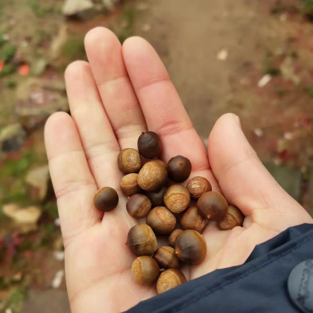 去年冬天异常得冷,连下了好几天的连绵细雨,许多老人在家里关窗闭户,烧炭取暖,镇上给大家发雨鞋雨衣,跟着村里的干部挨家挨户敲门,宣传一氧化碳中毒相关的知识。这是其中一位老爷爷,给我们抓的一把尖栗子,异常的香甜。