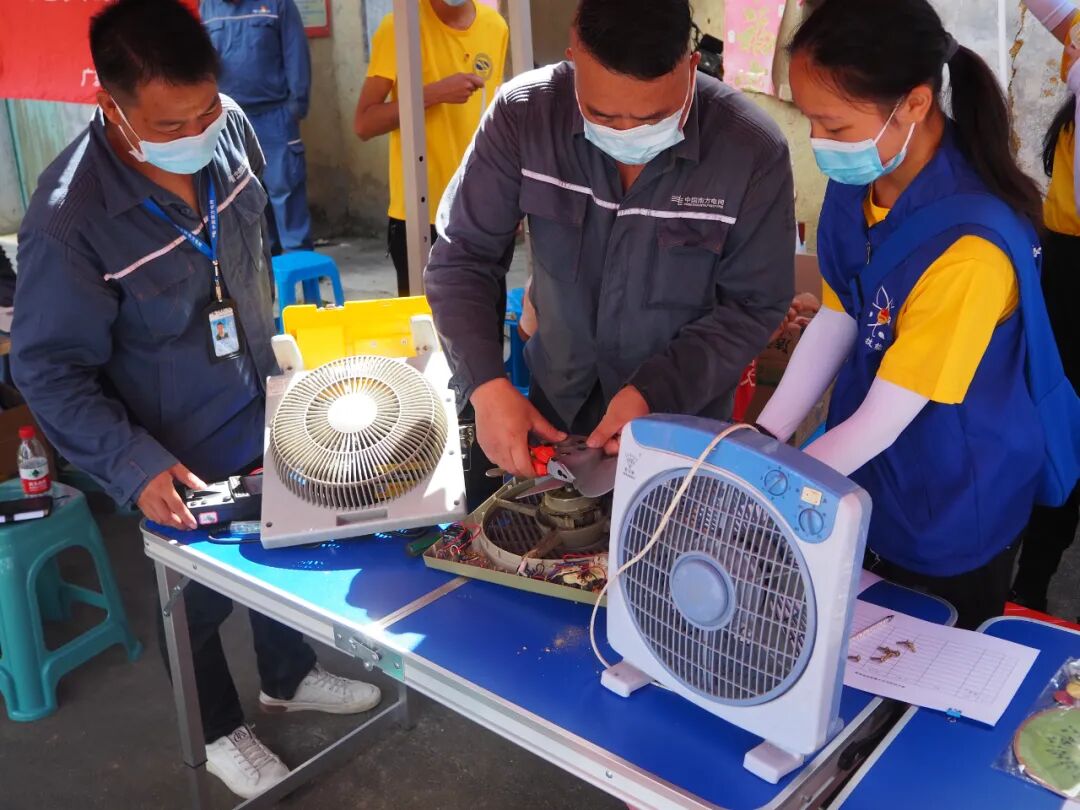乡村部分家用小电器质量不高,维修不便,损坏、闲置、老化电器较多,志愿者在服务期间设置了小家电义修点,短短两天时间累计维修电器超过60件;针对偏远、困难、留守、空巢家庭,志愿者们则上门服务,在当地供电局专业人员的陪同下,把温暖送到群众家中。