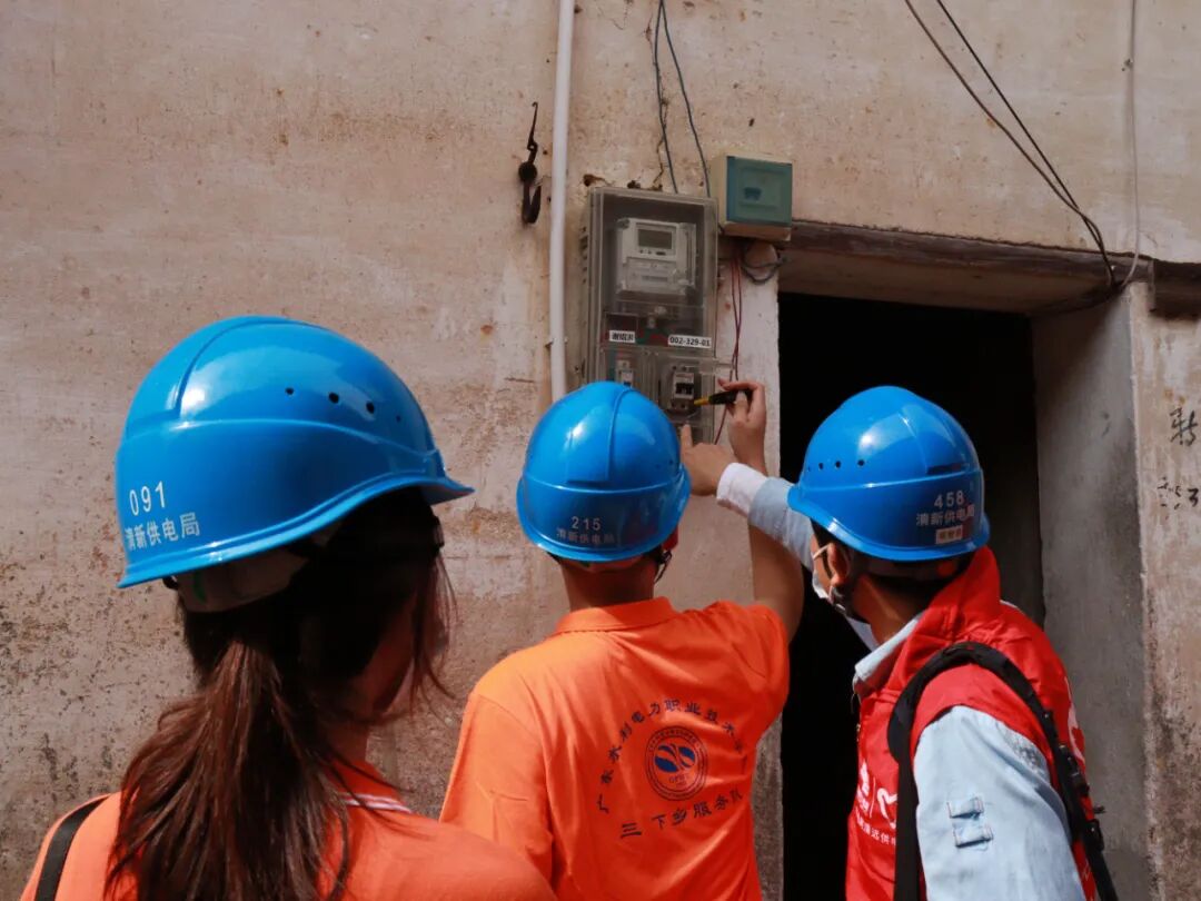 ▲在当地供电所技术人员带领下,灯火团队进行入户检修