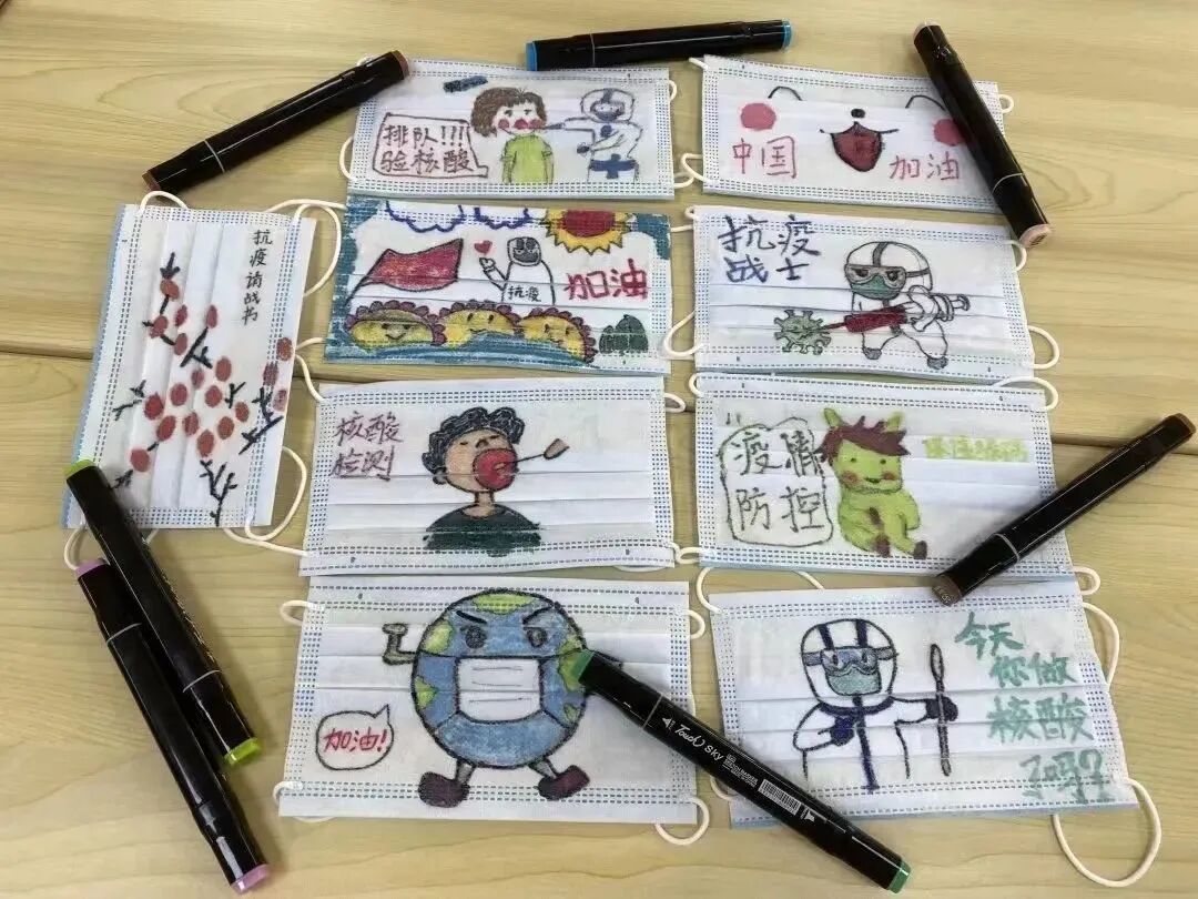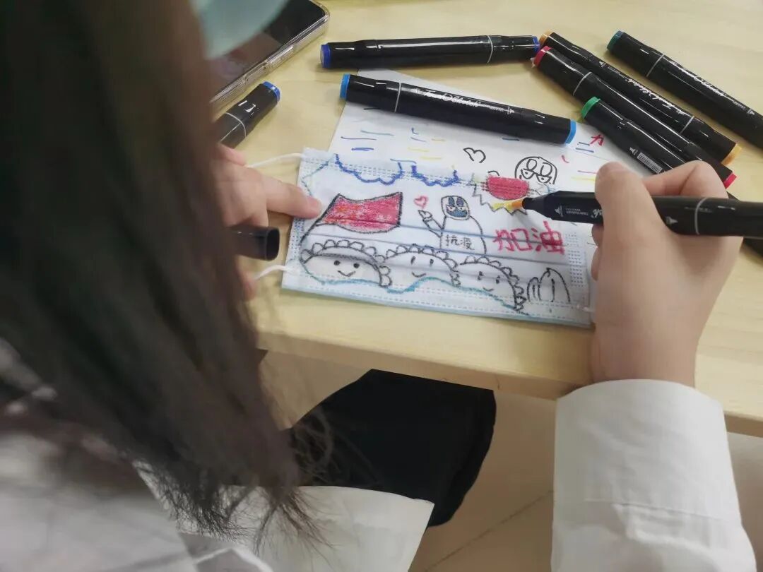 当疫情防控成为常态,社员们将自己所见所闻、所思所感化作创作的热情,将抗击疫情的感人场景以绘画的形式外化于形,把一张张鲜活生动的场景烙在一个个口罩上,以此来诠释和传播抗疫精神,大家把在疫情大考中接受到的思想教育通过绘画的方式呈现,在绘画中更进一步把这次抗疫大思政课的所获内化于心。