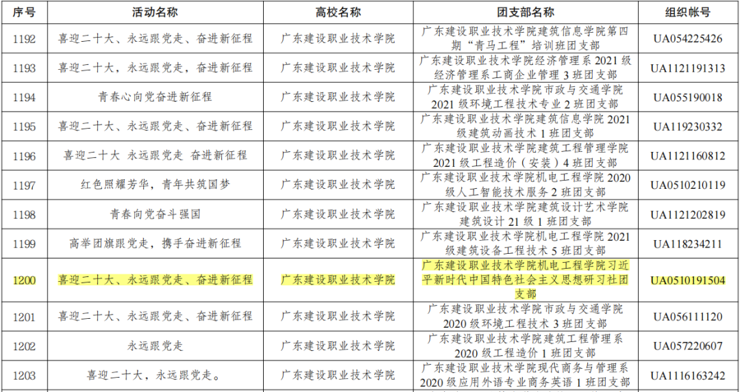 在2022年广东省高校“活力在基层”主题团日竞赛活动中,紧紧围绕“喜迎二十大、永远跟党走、奋进新征程”主题,入围广东省高校“活力在基层”主题团日竞赛活动春季赛项“千入围”项目。