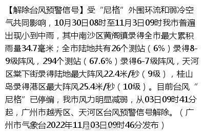 台风“尼格”已停编的消息,于09时46分开始解除台风预警信号。