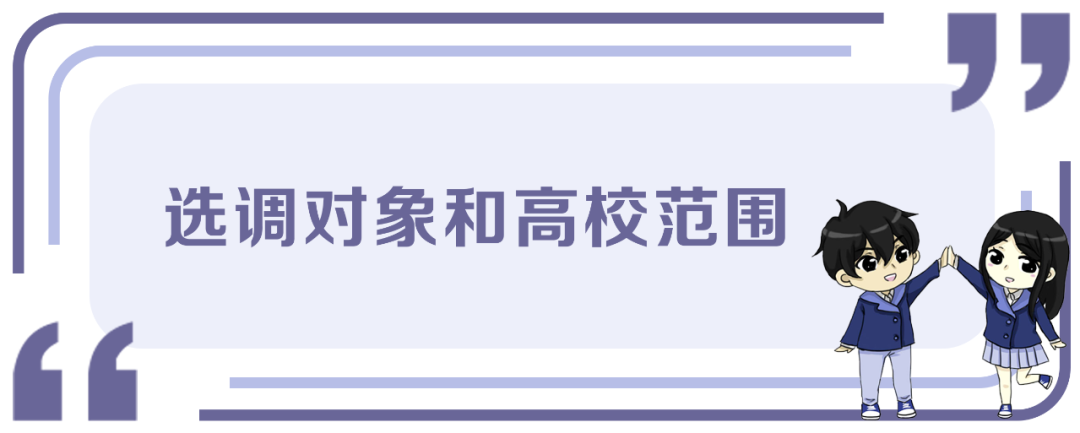 选调对象为部分国内高校2023年全日制大学本科(学士)及以上学历(学位)应届优秀毕业生,以及2022年10月1日至2023年9月30日期间取得学位并完成中国(教育部)留学服务中心境外学历、学位认证的部分国(境)外知名高校优秀全日制大学毕业生。选调高校范围见附件2。报考者需以最高学历(学位)报考。报考者最高学历毕业证书、学位证书应于2023年9月30日前取得。国(境)外知名高校毕业生还应在2023年9月30日前取得中国(教育部)留学服务中心境外学历、学位认证函。定向培养、委托培养、在职培养以及专升本(专插本)、网络学院、成人教育学院、独立学院、民办分校的应届毕业生不列入选调对象范围。![]()