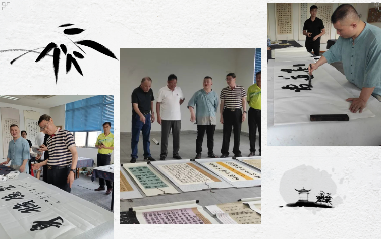 活动现场书法老师与同学们泼墨挥毫,一起为