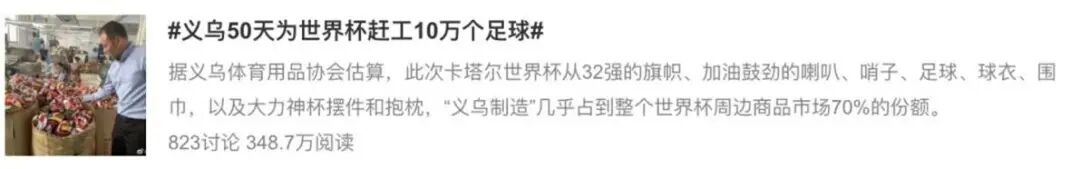 近日,#世界杯场馆中的中国造#话题被许多网友热议,但其实中国企业在世界杯的首次亮相可以追溯到12年前。2010年南非世界杯因为一家赞助商临时退出,来自中国河北保定的光伏企业英利“意外入围”。那个夏天,写有“中国英利”四个汉字的世界杯成为中国企业体育赞助史上值得被铭记的一个瞬间。转眼现在,“中国造”的身影与世界杯比赛融合得更加密切。世界杯主场馆卢塞尔体育场位于卡塔尔首都多哈以北约15公里处,外观以椰枣碗与珐琅灯笼为设计灵感。场馆建筑面积达19万平方米,可容纳92000多名观众。这也是中国企业首次以主承包商身份呈现的世界杯主场馆,也是目前中国企业在海外建造的规模最大,容纳人数最多的专业场馆。卢塞尔体育场还是他还是世界最大跨度双层索网屋面单体建筑,是全球首个在全生命周期深入应用建筑信息模型(BIM)技术的世界杯主场馆项目。宁夏大学资源环境学院研发团队用11年的时间,另辟蹊径研发出地下渗透灌溉技术。通过共建“一带一路”,宁夏大学与卡塔尔纳斯集团、华新国联(北京)企业管理有限公司三方达成了12.64亿美元的合作协议,该节能灌溉技术将助力卡塔尔完成2022年世界足球杯赛绿化项目。CCTV《新闻直播间》栏目提到,此次将有1500台左右的宇通客车服务于各国球迷、使节、FIFA官员的比赛出行。其中由888台宇通纯电动客车组成的“绿色军团”尤为引人注目,这是新能源客车首次作为主力服务世界杯赛事,也是国际大型体育赛事中首次大批量引入中国新能源客车,这是中国新能源技术实力得到国际认可的有力注脚,也是中国制造“走出去”的新里程碑。这块超过30平方米的超大显示屏,出自广东深圳的一家企业。负责人提到,为了适应卡塔尔温度高、日照强的环境,他们提高了屏幕的散热效率,同时减少了观众的视觉盲区。而在世界杯场馆旁的训练场中,是同样“中国制造”的看台座椅。这套伸缩活动看台系统,通过模块化的设计,可以整体移动或拆除。“世界杯超过一半的周边产品来自义乌。”这句话并不是传说。实际上,从年初开始,浙江义乌和慈溪、福建晋江、广东东莞等城市就已经接到世界杯有关商品的生产订单,并根据订单需求开始抓紧安排生产。义乌外贸协会会长徐俨介绍,今年世界杯产品订单量激增。据义乌海关1-8月数据,今年义乌体育类产品订单出口总额已达38.2亿人民币。近日,#义乌50天为世界杯赶工10万个足球#冲上热搜。一位义乌店铺老板从中提到,世界杯前后义乌出口的足球能达到100万个。据义乌体育用品协会估算,本次卡塔尔世界杯70%的周边产品市场将被“义乌制造”所占领。除了足球,这次还有许多新鲜的产品出现在了“备货大军”中。速卖通数据显示,从3个月前开始,在巴西市场中国投影仪的增长开始显现,近一个月销售额同比增长了250%。近一个月,国产“桌上足球机”在阿联酋销售额增长了120%;“巴适”看球也成了新消费趋势,在巴西市场舒适型沙发的销售额同比增长了1156%,在阿联酋则增长了800%。“球星卡作为世界杯期间的硬通货,产品上线第二天我们就接到了来自海外客户的订单。”拿到帕尼尼授权的中国代理销售商庄晓婷介绍,此前她从速卖通行业小二那了解到目前在平台上球星卡还处于空白市场,而且会成为今年新的消费趋势。经过不到一个月时间她就为此开了一个新店铺,还没上线就备了10万的货。据速卖通统计,近30天来,速卖通上沙特地区游戏卡销售额同比增长了580%,巴西地区增长了480%,韩国地区增长了400%。“中国制造”已经在这场世界赛事中发挥了重要作用。小到纪念品、日用品,大到客车、体育馆等,中国制造的世界杯相关产品已经涵盖了国际工程产业、新能源车产业、体育用品产业、跨境电商产业、轻工产业等。专业人士认为,“中国制造”在世界主要赛事体育衍生品产业中已经具备全球影响力,中国出海企业有着愈加强烈的知识产权和品牌全球化建设意识,正从“产品出海”向“品牌出海”转换。CIC灼识咨询总监姜骁潇说,以“世界小商品之都”义乌为例,其世界杯相关产品订单持续爆单,生产进入满负荷状态,承载过半的卡塔尔世界杯小商品需求量。“与上一届相比,这一届世界杯预计迎来超10%的增长可能。”瞅准世界杯的带动作用,跨境电商平台也早早布局。例如,速卖通日前便宣布将在“双11”期间为海外消费者搭建世界杯专场。随着时间节点临近,2014年被中国外贸代工厂反向收购的西班牙体育运动品牌卡尔美目前正在为速卖通消费者进行库存备货。该品牌跨境电商负责人徐小正预计,通过今年海外“双11”,卡尔美在速卖通上应该可以实现销售额的5倍增长。据阿里巴巴国际站统计,截至10月12日,已经有超过20个世界杯相关的行业,33个商品大类,超过1000万件商品报名参与(世界杯专场活动),包含运动鞋服、球星卡、小国旗、啤酒销售服、足球用品、球迷用品等。随着世界杯的临近,10月以来,速卖通上足球相关的商品热搜词飙升明显。在巴西,“巴西足球服”的搜索量环比9月翻了近3倍;在西班牙,“足球”的搜索量也比9月提高了2倍。杭州孚德品牌管理有限公司是2022卡塔尔世界杯吉祥物及周边衍生品的官方授权运营商,此前曾获2014年巴西世界杯和2018年俄罗斯世界杯授权。该公司CEO 郭志浩告诉记者,相较往届,(近几年)短视频、直播的入局将会