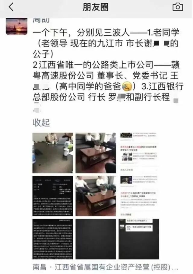 至此,周劼的身份得到了确认,朋友圈内容也确实是其所发。根据网传截图,周劼非常喜欢炫耀政府官员和国企高管与自己的交往,让人很难相信一名“普通员工”胆敢如此高调。