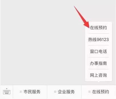 2、在首页选择“在线预约”板块,依次点击“我要办”“在线预约”。