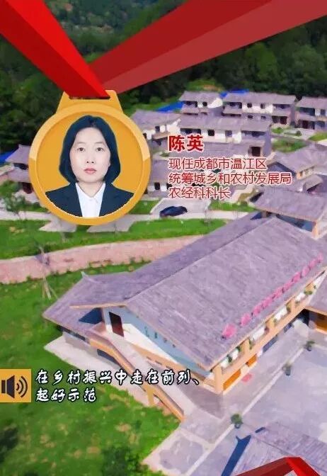 陈英 女,汉族,九三学社,1974年5月生,大学本科,1995年8月参加工作,现任成都市温江区统筹城乡和农村发展局农经科科长。