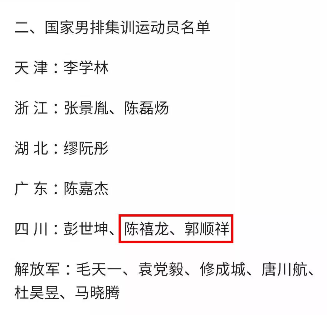 据国家体育总局排管中心消息,新都区升庵中学学子陈禧龙、郭顺祥光荣入选国家队,已远赴体育总局训练局报到,参加排球中心组织的国家男排第一批集训。