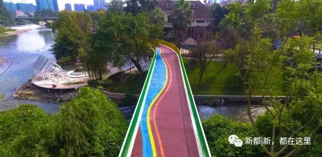 绿道上有一家子共骑一辆观光自行车有说有笑的;也有小朋友轮滑嬉戏追逐,趴在绿道上绘画的,这里的各类游乐设施,更是小朋友的“快乐天堂”;还有一家人铺一张毯子在草坪上打扑克、阅读的,当然更多的还是漫步和拍照的……各种“花式”休闲场景,在毗河绿道上都能找到一二。新都还邀请本地画师对沿途的高大树木、电箱、窨井盖等细节处进行彩绘,所以只要有心,在毗河绿道上,总能拍出各种“大片”,还有人以毗河绿道为主题拍摄的照片在摄影大赛上获奖了。