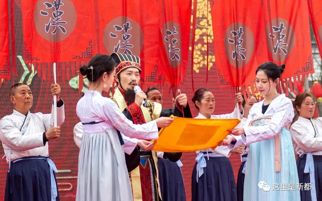 此次菜花节活动,举行了气势恢宏的以“蜀风汉韵·新佑民福”为主题的汉代祈福大典,挖掘新民汉代高祖文化和历史故事,以花为媒、以文为展,同时汉服、汉赋、汉乐、汉舞……一系列充满“汉风”的元素接连上演,让游客近距离感受汉代礼仪的魅力,充分展示新民独具一格的风土人情和悠久的历史文化底蕴。