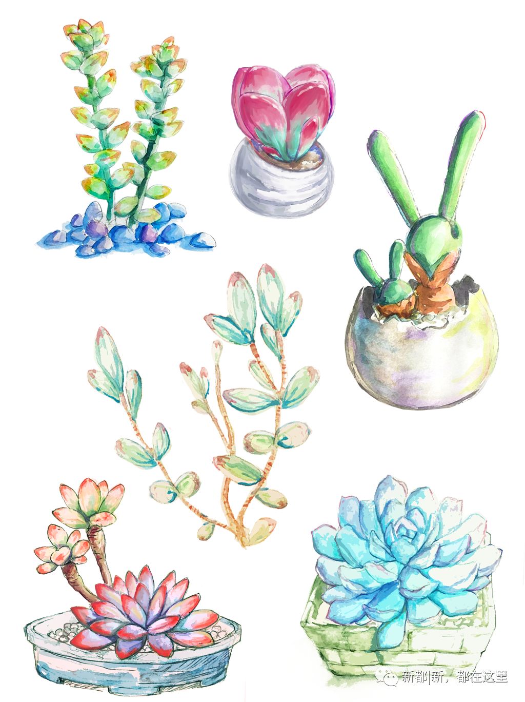 材料包含:多肉植物、瓷盆、多肉用土壤、微景观小造型、铺面石。