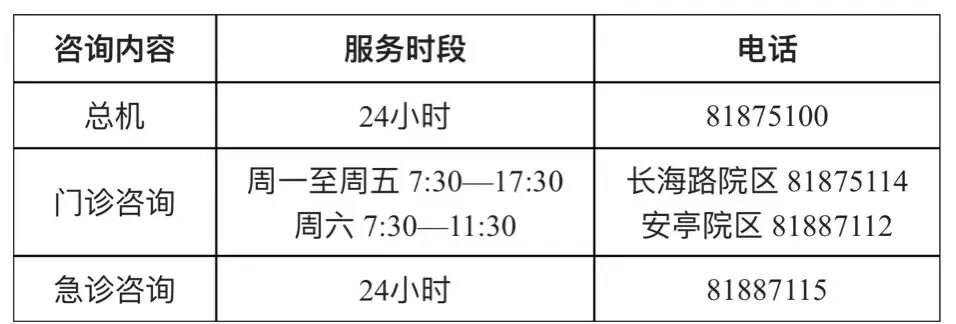 疫情期间相应临床科室设有咨询电话(工作日8:00-11:30 13:30-17:00工作时间:8:00-17:00,节假日除外),可致电总机转