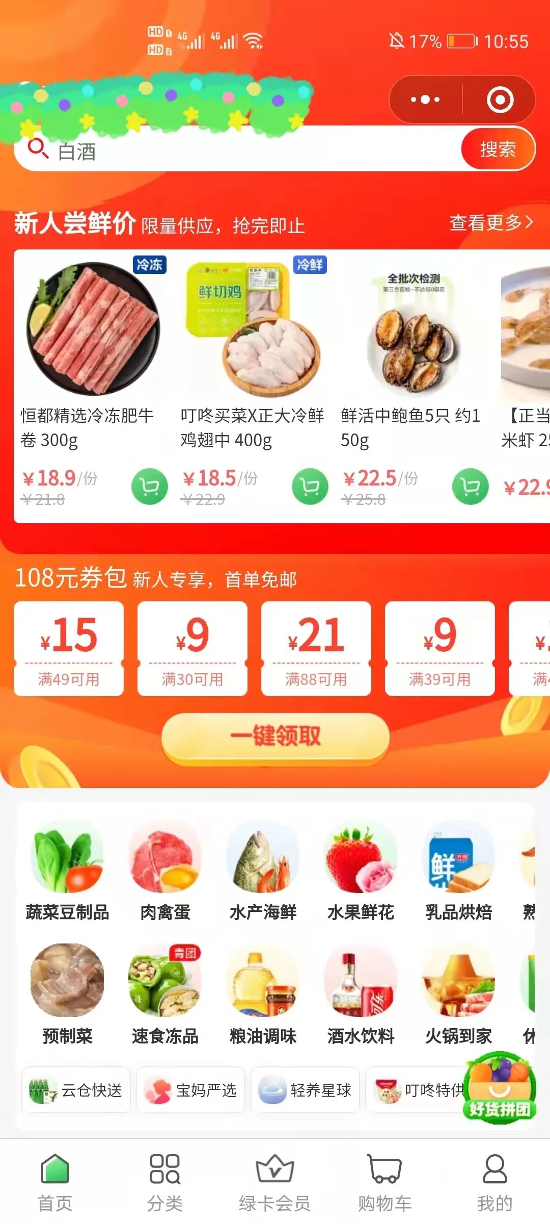 叮咚买菜,小程序直接就能买。新人注册还有108元券包可以领取,还有新人专区尝鲜价,未注册的朋友不要放过~