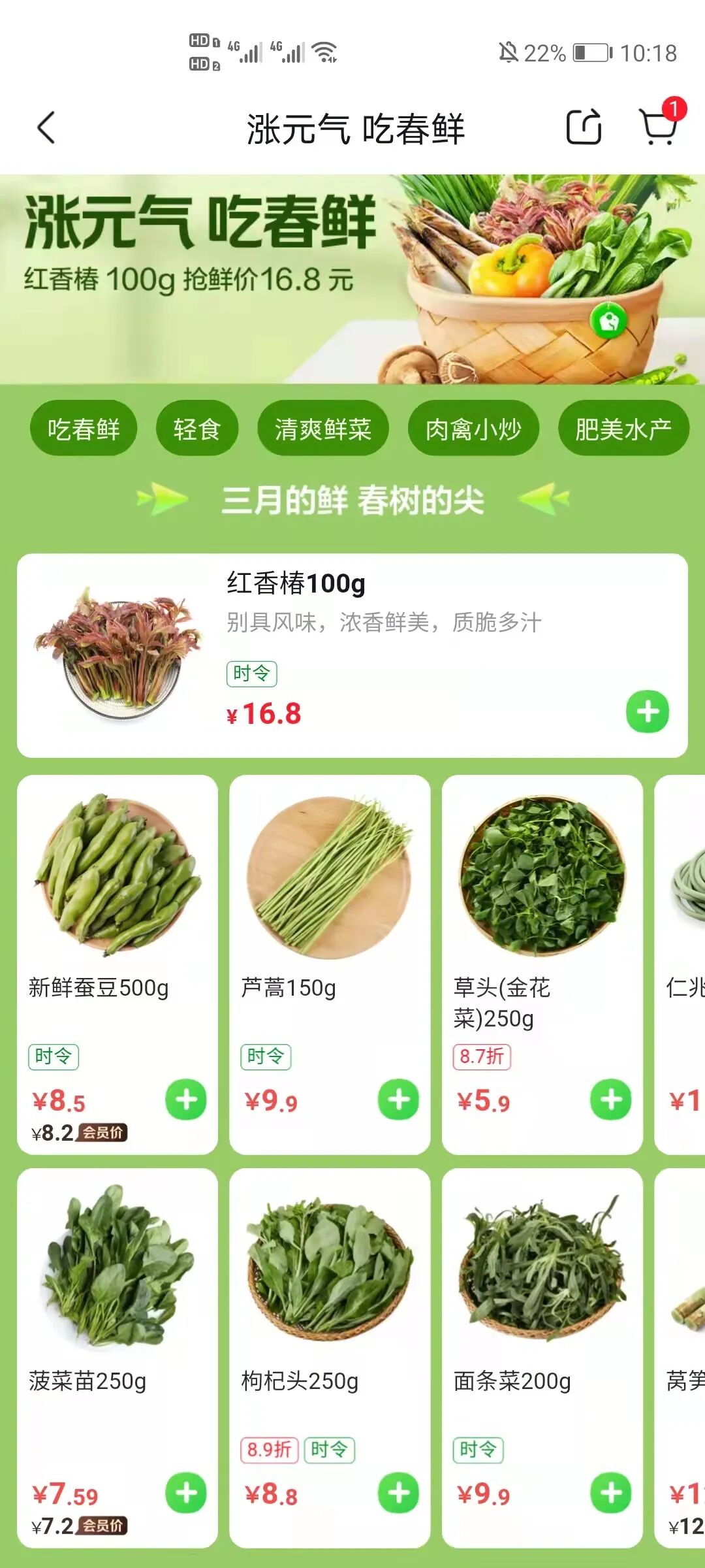 饿了么特有的春日尝鲜板块,当季蔬菜新鲜优惠,点进去直接是优惠价;还有9.9元尝鲜系列,从0.99元到20几元不等,全是新鲜好货。想更优惠,可以等晚市。