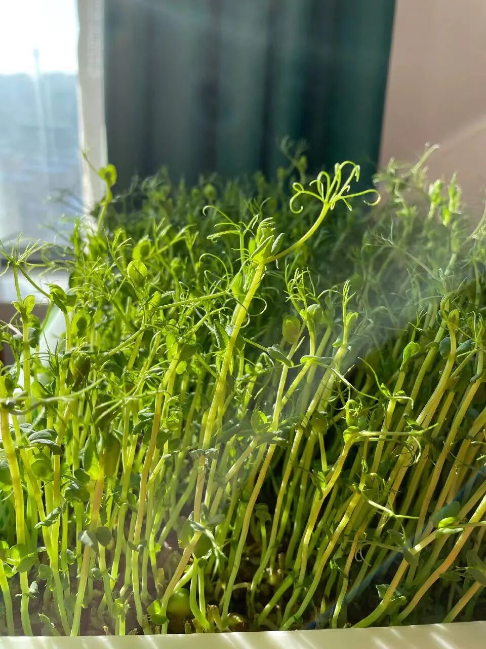 家里囤的豌豆、黄豆、绿豆,也可以翻出来种植。只需要1小碗,就能长出1大把,用来煮汤、清炒,都好吃~