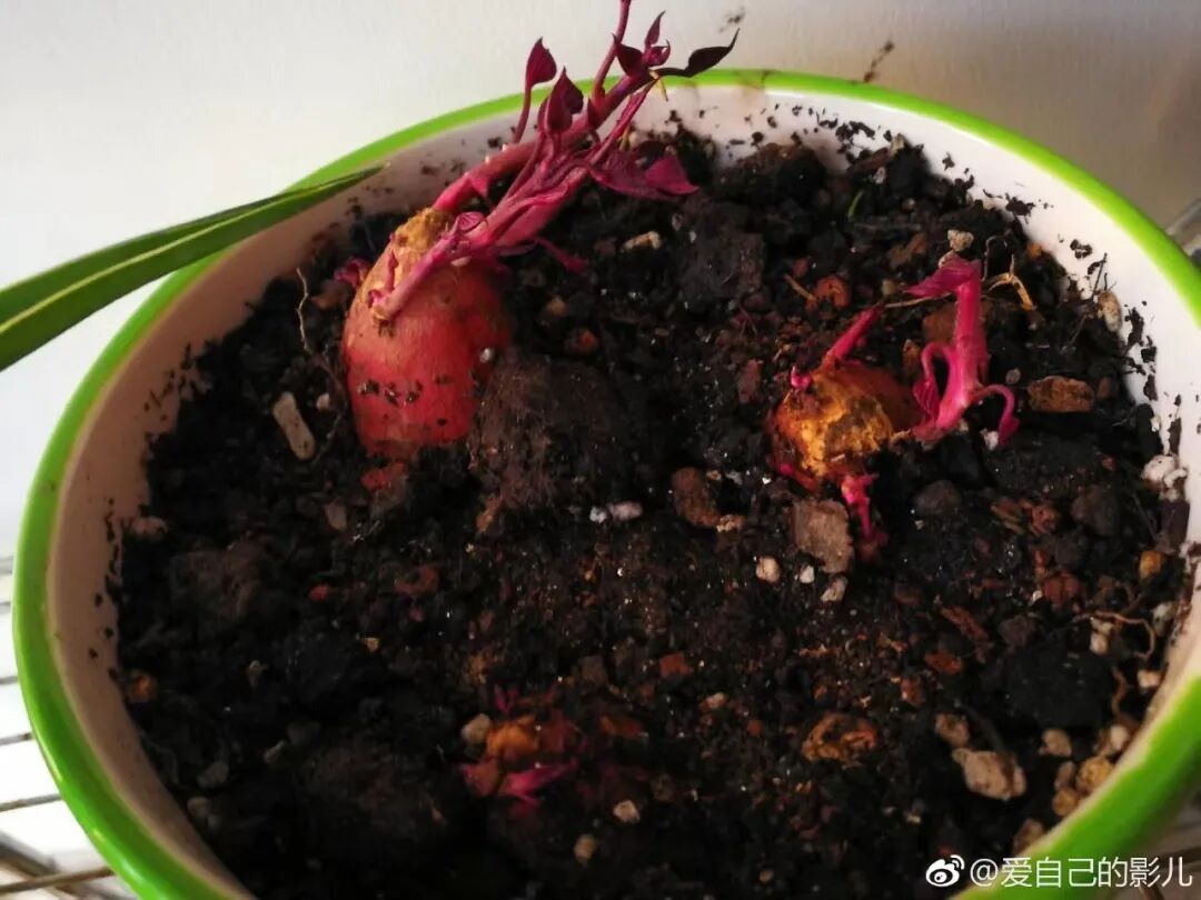 红薯发芽了,也不要扔,埋进土里,按时浇水就可以收获红薯尖了。放在家里作为绿植观赏,也十分清新~