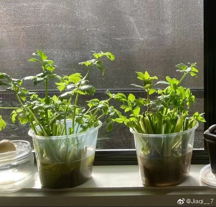 到手的芹菜,根部不要切,留着!芹菜根须放入水中,按时换水,等待1到2周,一大把芹菜很快就会长出来。既可作为观赏植物养眼,也可作为后面的蔬菜来源~