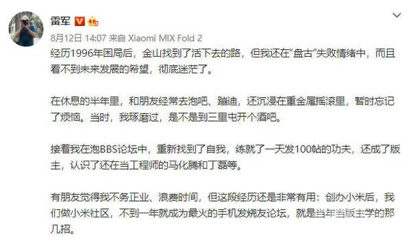 “1996年的生死磨炼,帮我补上了站店卖货这么关键的一课。不仅仅帮金山活下去,也让我对零售有了一定的理解,终身受益。”雷军表示。