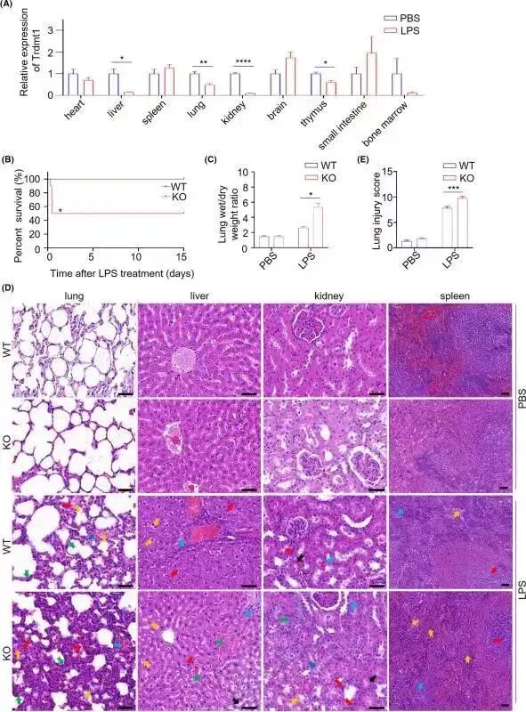 图4:TLR4通路激活导致LPS诱导的Trdmt1敲除大鼠死亡。