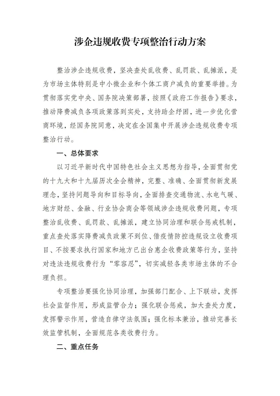 《涉企违规收费专项整治行动方案》已经国务院同意,现印发给你们,请认真贯彻落实。