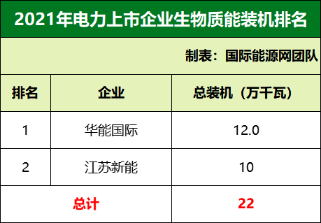 其中,华能国际生物质能装机12万千瓦,江苏新能装机10万千瓦。