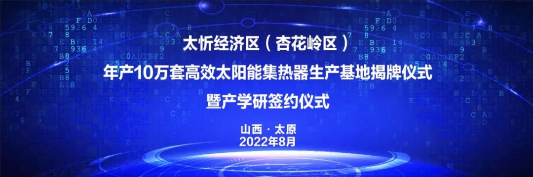8月5日上午,年产10万套高效太阳能集热器生产基地揭牌仪式暨校企产学研基地合作签约仪式在山西太原隆重举行。