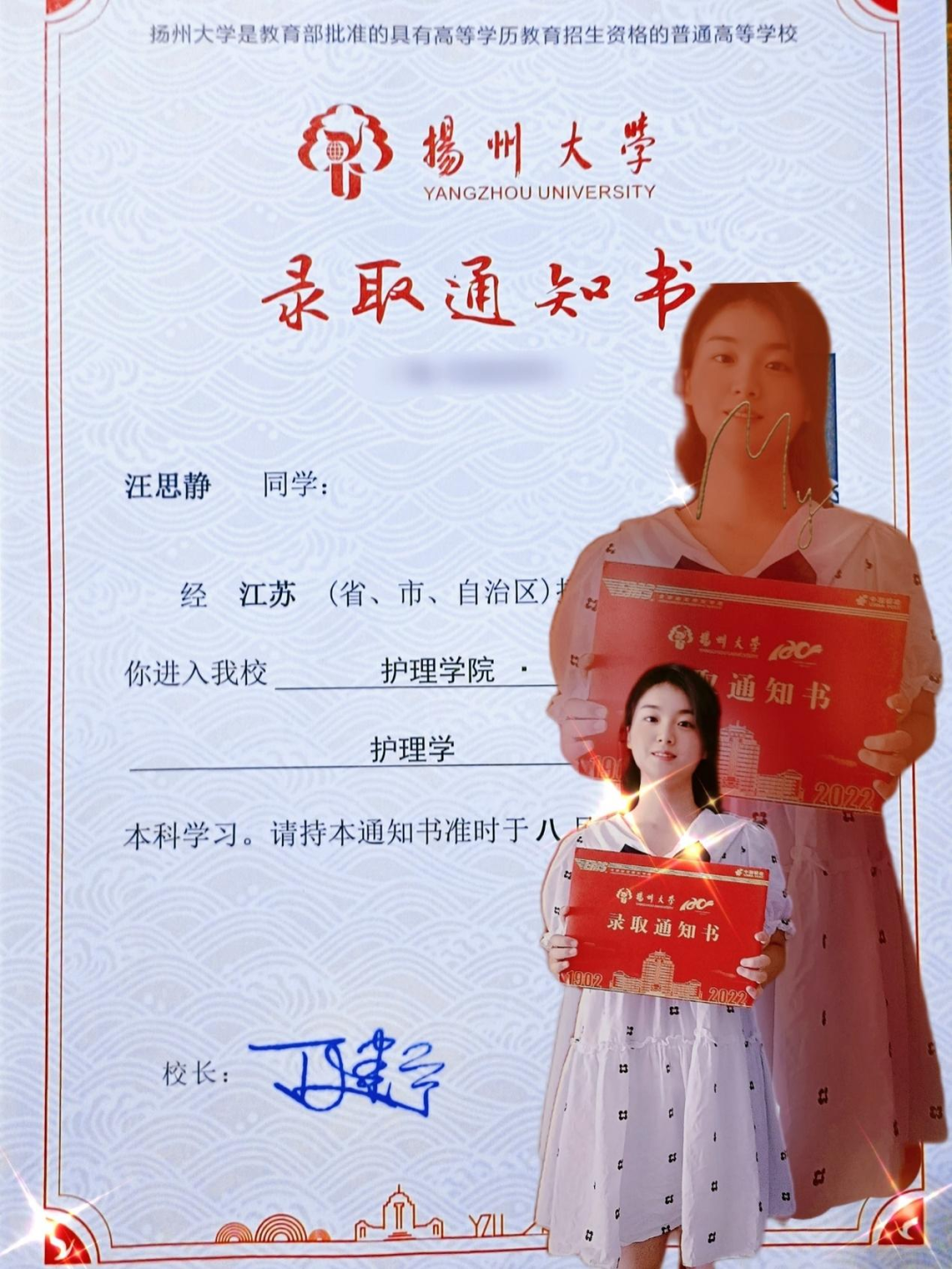 昨日种种,皆成今我,这份沉甸甸的录取通知书,终于送到了我的手中!在接下来与扬大共度的岁月中,我将会秉承坚苦自立的精神,素履以往心之所趋。扬大~我来啦!!!
