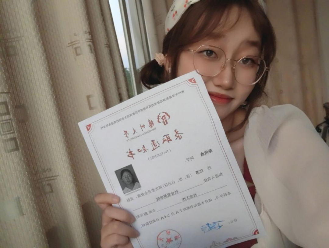很高兴来到我向往已久的扬州大学,并成为教科院的一员。希望以后依然朝着目标努力,与大学生活中的小确幸撞个满怀。