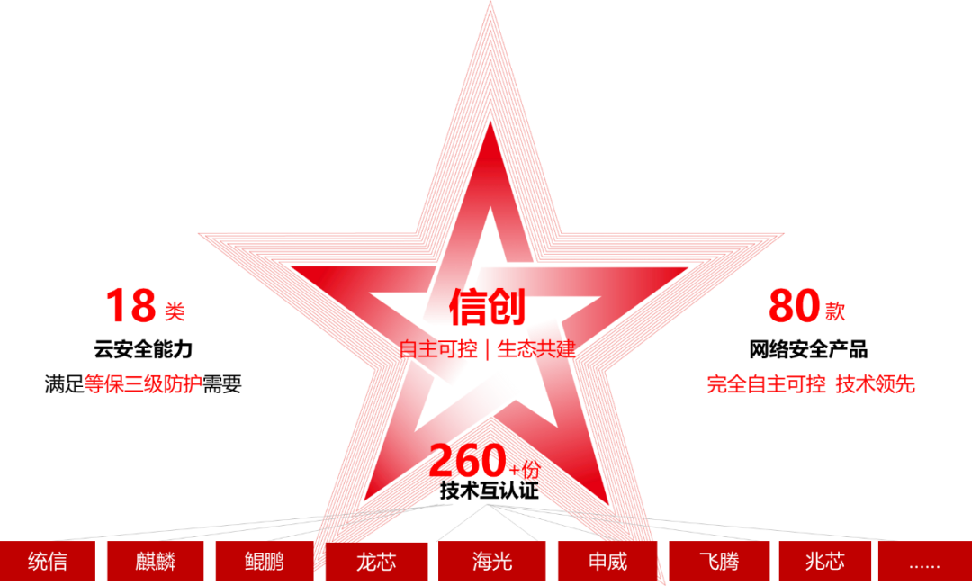 在信创生态下,安恒信息不仅实现了安全计算环境、安全通信网络、安全区域边界等通用技术体系构建,同时在大数据安全、云安全等扩展技术能力上也具备信创生态。安恒信息推出的“多云多芯一体防护”多云管理安全运营平台在信创云安全领域的初步调研市占率位居第一梯队,在浙江、山西、海南、广西等省市级项目落地。态势感知(AiLPHA)全面兼容鲲鹏、海光、飞腾规格,并在公安、网信、金融等行业持续落地标杆项目。