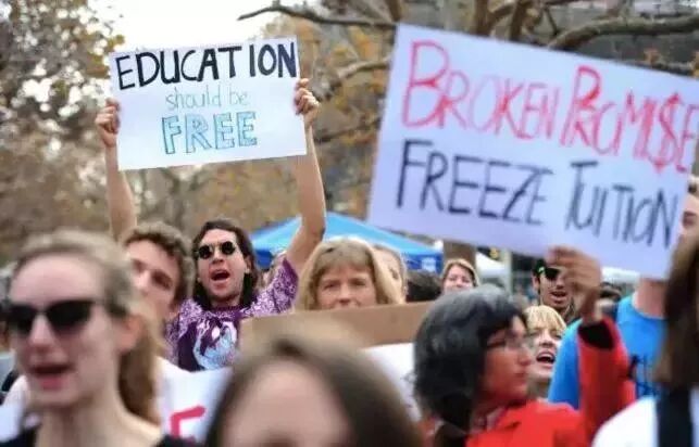 ▲ 美国大学生抗议学费上涨(图片来源:留学全知道)