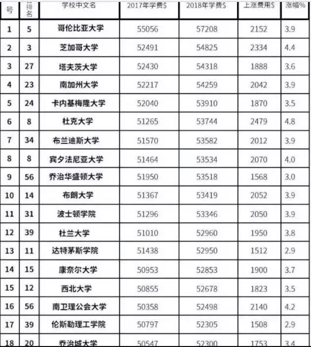 除了哈佛大学和宾夕法尼亚大学宣布降价外,其余前30强的美国名校都是和芝大相类似的涨价情形。