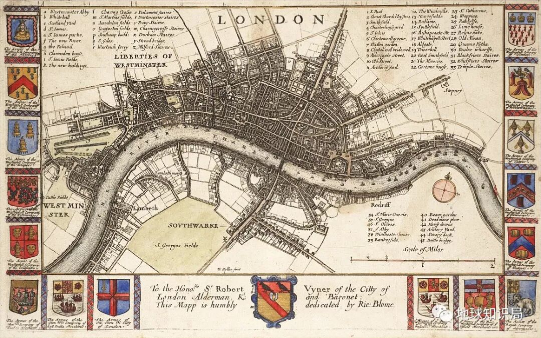 (Wenceslas Hollar所绘1665年伦敦地图)