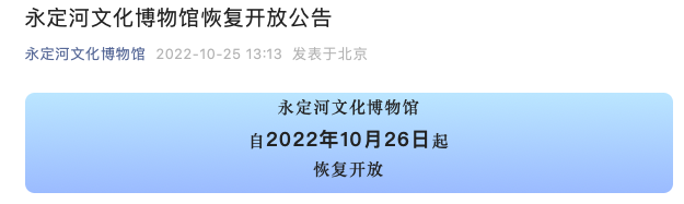 永定河文化博物馆自2022年10月26日起恢复开放,开放时间为每周二至周日9:00-16:00,星期一闭馆。