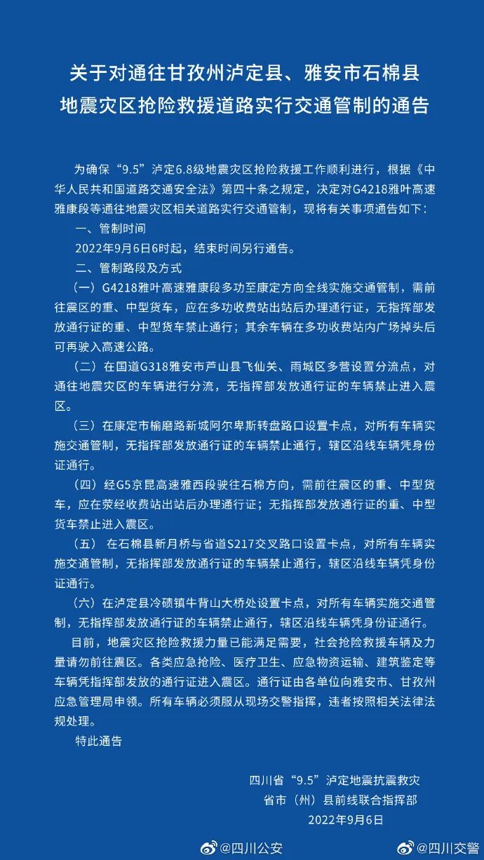 9月5日12时52分,四川省甘孜州泸定县发生6.8级地震,成都、乐山、重庆等地震感也很强烈。