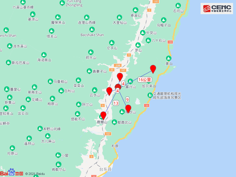 随后,台东县又发生3次地震,其中两次4.7级,一次5.3级。