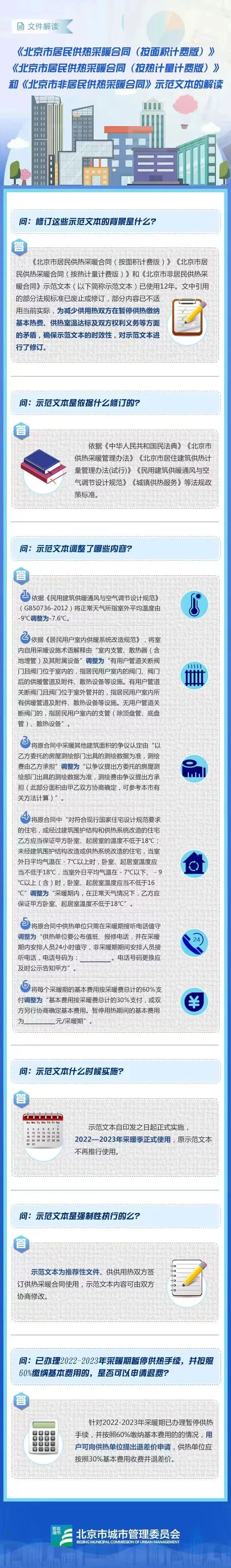 记者还了解到,修订后的《北京市居民供热采暖合同(按面积计费版)》《北京市居民供热采暖合同(按热计量计费版)》和《北京市非居民供热采暖合同》共3项示范文本在北京市城管委网站上公布并正式实施。