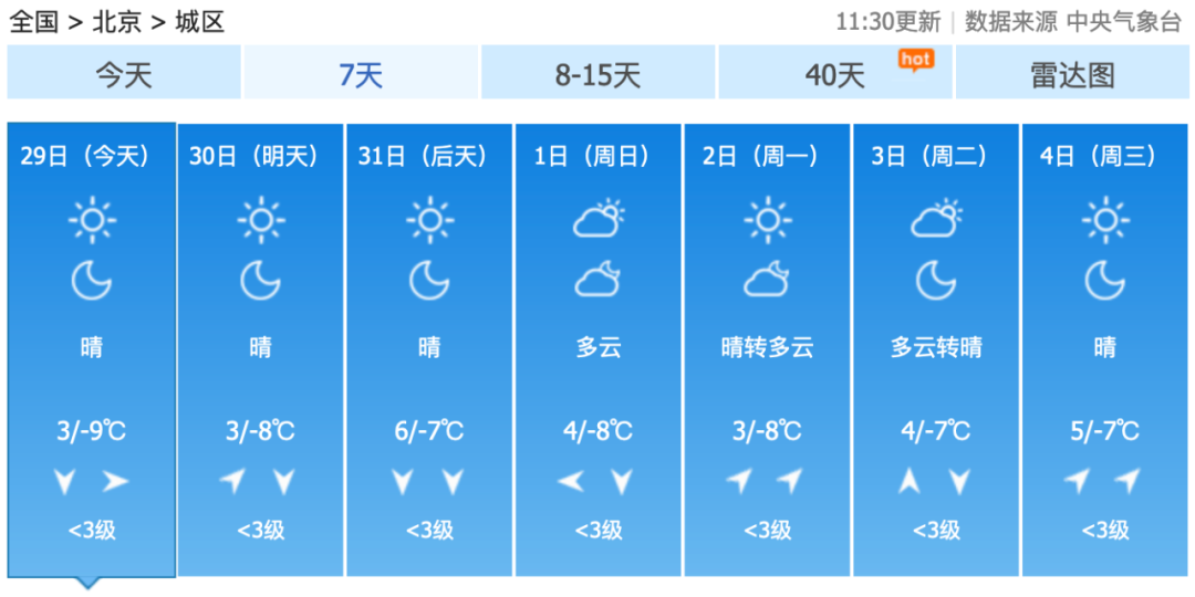 总体来说,元旦期间京城天气较适宜出行,但早晚气温低,外出注意防寒保暖。