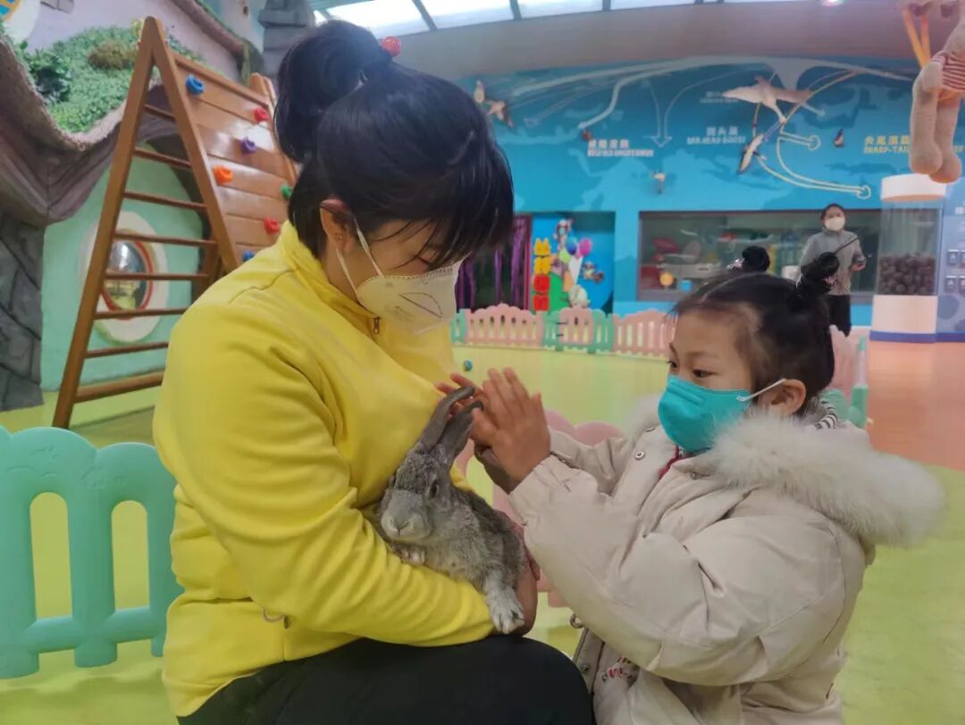 游客在观赏小兔子的同时,还可以通过“兔年说兔”“兔年讲兔”等主题科普活动,了解关于小兔子的知识。小朋友也可以在萌宝幼儿园的大厅里,边听讲解,边近距离抚摸小兔子,给小兔子称体重、量身长,用画笔画下小兔子的可爱模样。