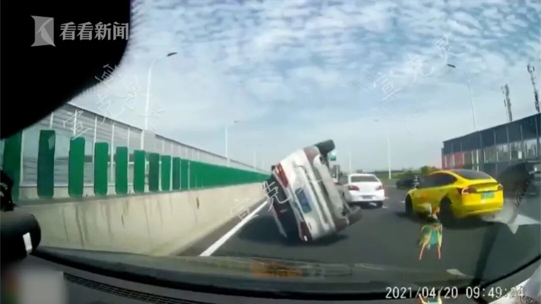 【惊险!】中环高架:轿车尾灯频闪 一头撞向隔离栏!