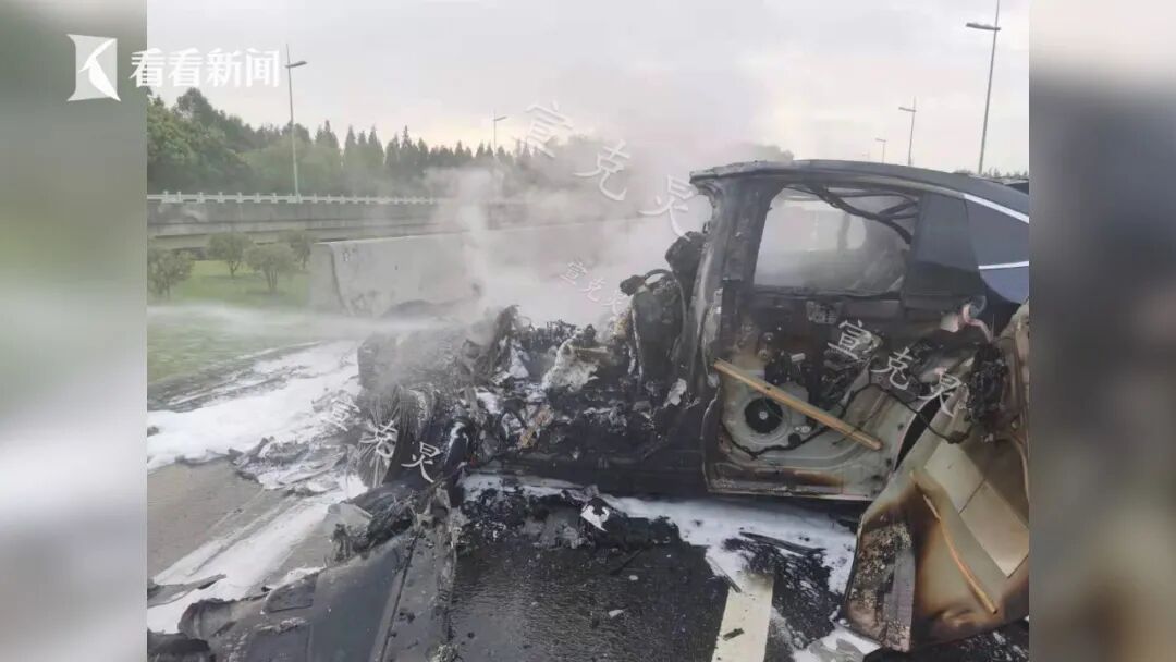 今天(7月30日)有网友反映,早上5点多,在浦东新区临港大道上发生了一起严重的交通事故,一辆蔚来EC6起火,驾驶员不幸身亡!从视频中可以看到:这辆蔚来轿车冒出浓烟起火,火势最初集中在车辆前半部分,将驾驶舱与前引擎盖吞没。车辆横在道路中央,车辆前部在发生撞击后受损严重,左前轮歪斜。大火扑灭后,烧毁的轿车前半部分已经彻底损毁,前半部分的乘员舱完全塌陷、前引擎盖、A柱、前侧双车门、挡风玻璃等都完全被毁。![]()